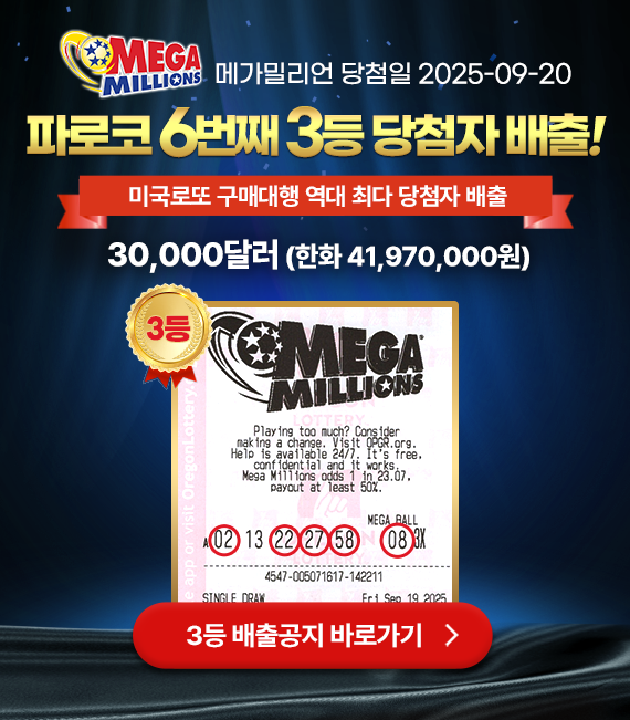 ■ 복권명 : 메가밀리언 / 3등