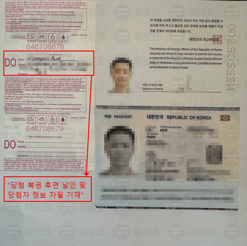 미국을 직접 방문하시지 않고 파로코 회원 명의로 당첨금 클레임을 대리 신청하였습니다.